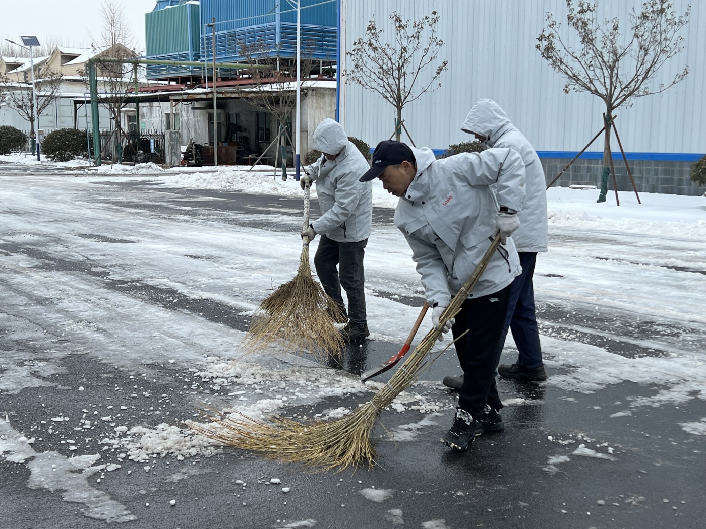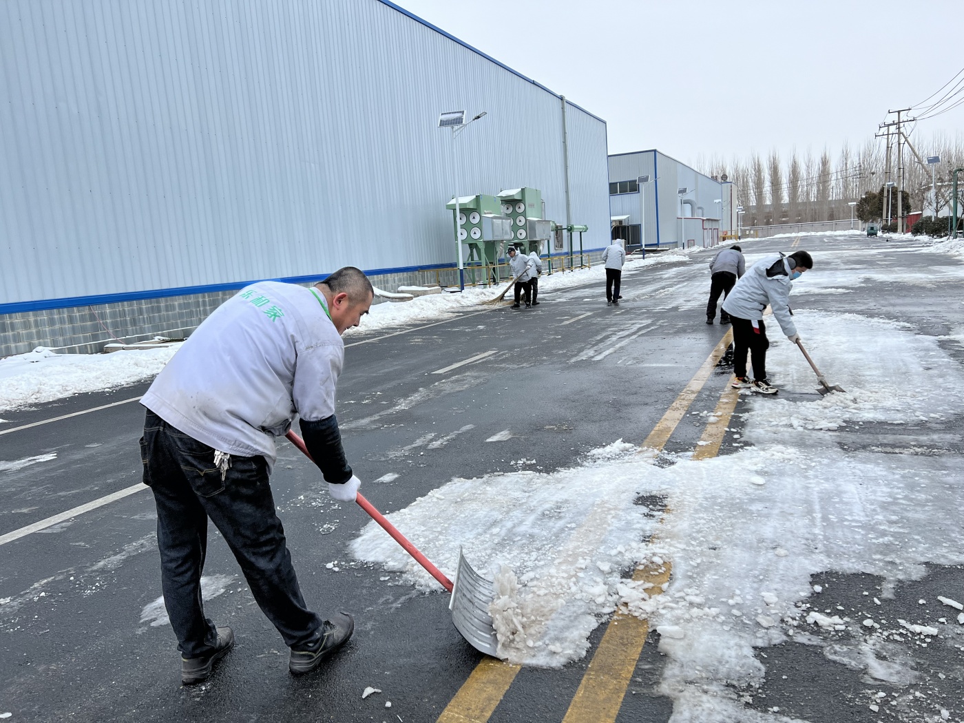 天氣雖冷,依然擋不住大家高漲的勞動熱情,掃雪現(xiàn)場氣氛熱烈,大家攜帶清雪工具,分片包干,分工有序,全力以赴開始對生產(chǎn)區(qū)主次干道、辦公樓前、各廠房、庫房等處的積雪進(jìn)行全面清理。